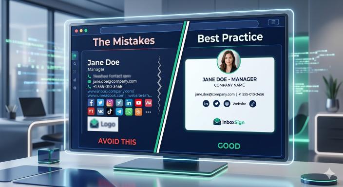 Fix: Stick to one primary phone number and your most important website link. Review our email signature templates to find a balanced, minimal layout, or use a professional email signature generator to automate the design.