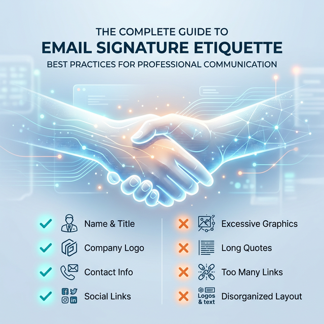 Email signature etiquette is the set of unwritten (and sometimes written) rules that govern how a professional presents themselves at the end of an email. It is a subset of "Netiquette" that focuses on: